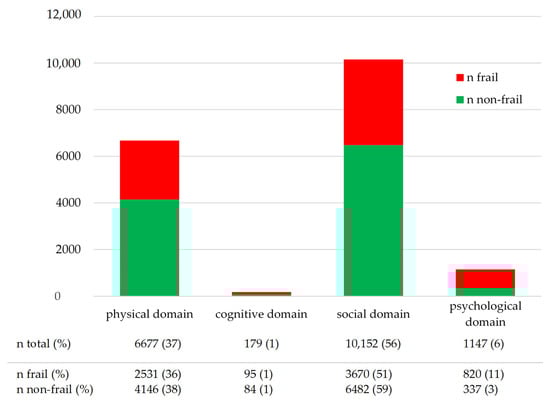 The findings of our study indicate that it is important to include the social and psychological domain in the frailty assessment. These findings are underlined by studies that found that, in addition to physical frailty, frailty in the social and psychological domain was related to decrease in quality of life [,]. This highlights the importance of a multidimensional assessment to accurately identify and monitor frailty.