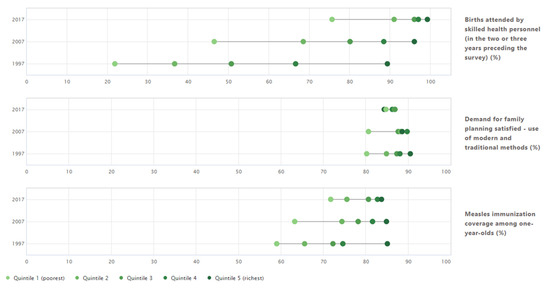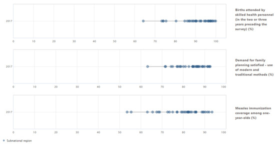 Subnational regional inequality in three reproductive, maternal and child health indicators: Indonesia (DHS 2017).
