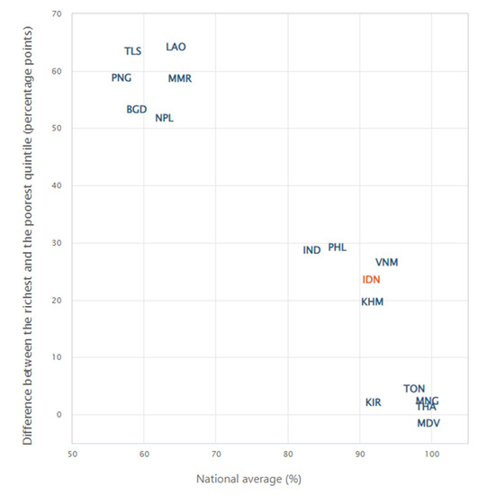 - World Health Organization. State of Health Inequality: Indonesia; World Health Organization: Geneva, Switzerland, 2017. [Google Scholar]