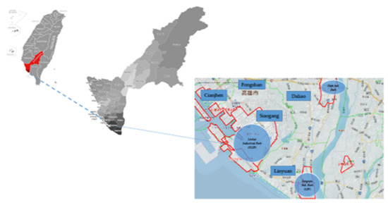 - Industry Development Bureau (IDB). Industrial Land Use and Supply Service, Industrial Development Bureau, MOEA, Taiwan, R.O.C. Available online: https://idbpark.moeaidb.gov.tw/ (accessed on 1 March 2022).