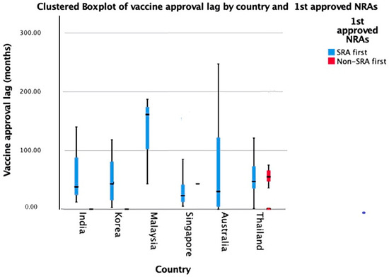 The difference in relative approval lag between the SRA first and non-SRA first groups was examined only in India, South Korea, and Thailand because non-SRA first vaccines were not available in the US and because of the lack of approval date data for non-SRA first vaccines in other countries. Our findings showed that the difference between the relative approval lag between SRA first and non-SRA first groups in South Korea and Thailand is statistically significant (Table 4).
