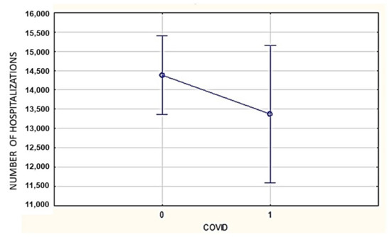 The number of DFU-related hospitalizations in Poland (2017–2019 (combined and averaged data), COVID = 0 vs. 2020, COVID = 1; 14,382.7 vs. 13,375, p = 0.17).