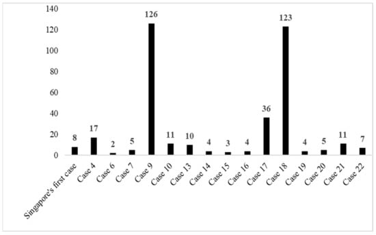 Case #9 was a Malaysian businessman who had returned from a work-related trip to Singapore in January 2020 and travelled to his hometown in Kedah to celebrate the Chinese lunar new year, and then returned to Kuala Lumpur where he was diagnosed COVID-19 positive. Subsequently, two of his close contacts also tested positive, cases #13 and #17. The latter two cases were the first identified cases of COVID-19 local transmission in the country.