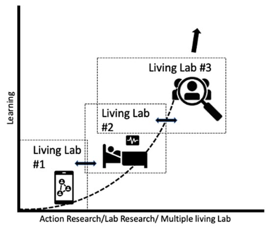 Living environments with human protagonists present major challenges for re-searchers taking on the role of impartial intermediaries to initiate and facilitate negotiations between stakeholders. Therefore, in this context, researchers represent Living Lab facilitators in multi-stakeholder environments []. Specialized fields of knowledge distinguish study and action activities in living, social, or organizational contexts (different environments, multi-locality and multi-stakeholder, groups of researchers from different backgrounds (technical or organizational)).