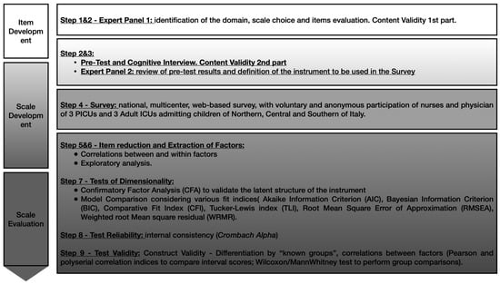 Study design. The study methodology follows the nine-step Boateng’s approach for developing and validating scales for health, social and behavioral research [].