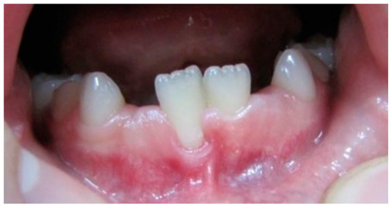 According to recent research, a minimum amount of keratinized tissue is not needed to prevent attachment loss when optimal plaque control is maintained in natural teeth. However, it has been demonstrated that the narrow zone of keratinized tissue in the presence of a dental biofilm favours the apical migration of marginal gingiva, especially in teeth undergoing orthodontic treatment [3,12]. Thickness of the gingiva in bucco-lingual dimensions, a second parameter characterizing gingival phenotype, in combination with direction of the tooth movement are considered important in soft tissue alteration and development or progression of mucogingival defect [1,6,9,13]. In case of a thin phenotype, dehiscence and/or fenestration, predisposing to gingival recession may occur if the tooth is moved beyond biological limitations, i.e., outside the osseous envelope [3,12,14,15,16]. The mandibular incisors were found to be the most susceptible teeth to labial recession development [11,17]. Some malocclusions become evident during the early mixed dentition period; on the other hand, this phase offers a great opportunity for the implementation of interceptive orthodontics [18].