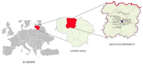 Šiauliai district is in the Northwest of Lithuania, located directly on the border between Aukštaitija and Samogitia, although it is considered a part of Samogitia. The district covers 1807 square kilometres, consists of 11 elderships, with a population density of 26 people/sq. km. The district has 1 city, 7 towns and 521 villages within its territory. The highest point is Grinikai hill (183.4 m). Šiauliai district is in the middle plain of the Venta river, in the lowland of the Mūša Nemunėlis and in the Eastern Samogitian plateau. Forests cover 34.8% of the district’s territory. Spruce and birch forests are predominant. The most important extractable minerals in the district are gravel and sand [17,18]. Most of the respondents lived closer to the border of Samogitia (Kuršėnai, Daugėliai, Kužiai, Gruzdžiai, Lukšiai, etc.) (Figure 1). Although the Samogitian dialect is quite prevalent in Samogitia, people who can speak the dialect usually use it only with people they are close to with, in a private environment and less often in public. Although the respondents were mostly from the Samogitian side of the border, they did not use the dialect during the interviews.