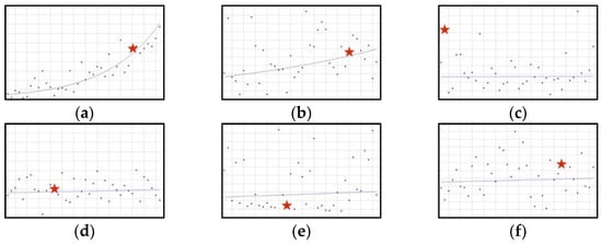 A schematic graph of the frequency of use of ingredients in the respective quarters in the period from the first quarter of 2012 to the fourth quarter of 2021. The star denotes the moment of publication of a scientific opinion or a resolution concerning the ingredient. The height of placement of the symbol reflects the level of use of the ingredient. (a): Ashwagandha (Figure A1); (b): Astaxanthin (Figure A2); (c): Lactoferrin (Figure A3); (d): Lycopene (Figure A4); (e): Trans-resveratrol (Figure A5); (f): White mulberry (Figure A6).
