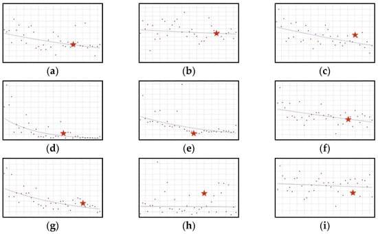 A schematic graph of the frequency of use of ingredients in the respective quarters in the period from the first quarter of 2012 to the fourth quarter of 2021. The star denotes the moment of publication of a scientific opinion or a resolution concerning the ingredient. The height of placement of the symbol reflects the level of use of the ingredient. (a): Aloe (Figure A7); (b): Caffeine (Figure A8); (c): Chromium (Figure A9); (d): ECGC (Figure A10); (e): Hoodia (Figure A11); (f): Niacin (Figure A12); (g): Phosphorus (Figure A13); (h): Red Yeast Rice (Figure A14); (i): Vitamin B12 (Figure A15).