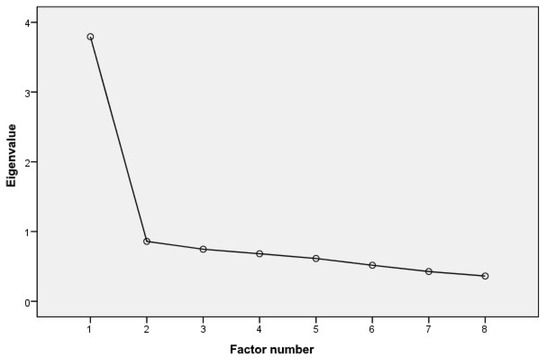 The single factor structure of eHEALS-Pl has also been empirically confirmed on the screen plot (Figure 2).