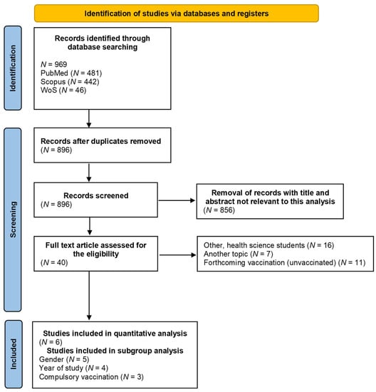 Ulbrichtova, R.; Svihrova, V.; Svihra, J. Prevalence of COVID-19 Vaccination among Medical Students: A Systematic Review and Meta-Analysis. Int. J. Environ. Res. Public Health 2022, 19, 4072. https://doi.org/10.3390/ijerph19074072