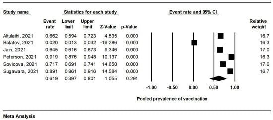 3.3. Meta-Analysis of Prevalence of COVID-19 Vaccination