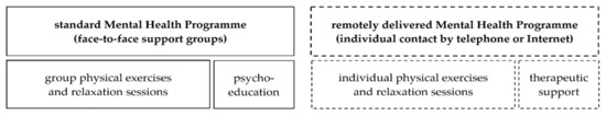 Since 1 April 2020, support within the project was delivered remotely. The Multimodal Mental Health Prevention and Promotion Programme comprised three elements: (1) maintaining previously established relationship through telephone contact, (2) providing general fitness exercises guidelines for in-home execution and recording of a relaxation session for daily listening and (3) providing professional psychotherapeutic care if the participant’s mental state deteriorates.
