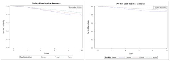 - Holmes, M.D.; Murin, S.; Chen, W.Y.; Kroenke, C.H.; Spiegelman, D.; Colditz, G.A. Smoking and survival after breast cancer diagnosis. Int. J. Cancer 2007, 120, 2672–2677. [Google Scholar] [CrossRef]