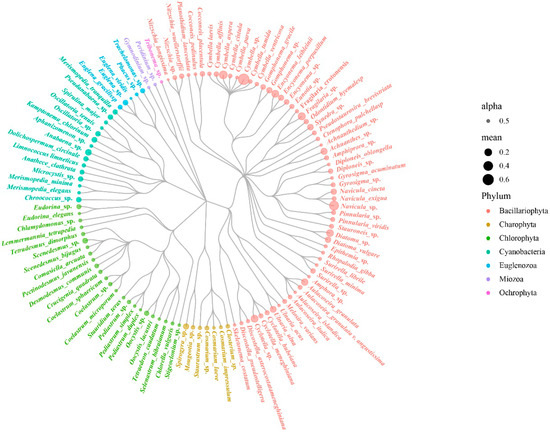 Evolutionary tree of species of algae in the Henan section of the MRP of SNWD.