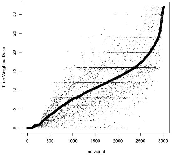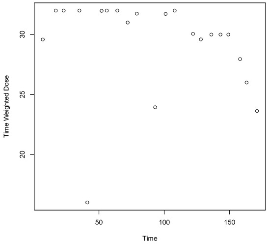 | Time Weighted Dose (mg) | Dose (mg) | Equation (1) | 11.9 | 12 | 0–32 |