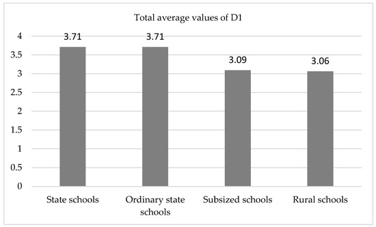 Figure 1. Diagram of the means. Overall mean values of D1 as a function of the type of school (p < 0.05).