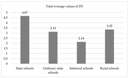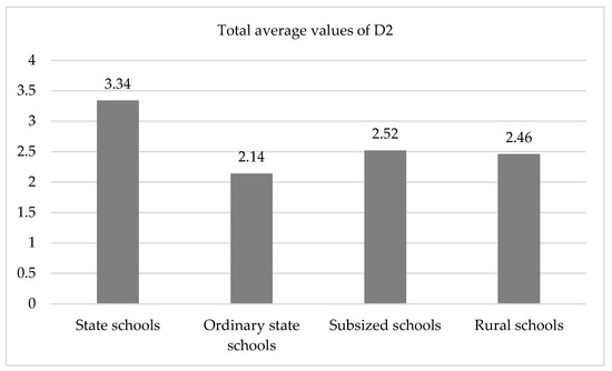 Figure 2. Diagram of means. Overall mean values of D4 as a function of the type of school (p < 0.01).