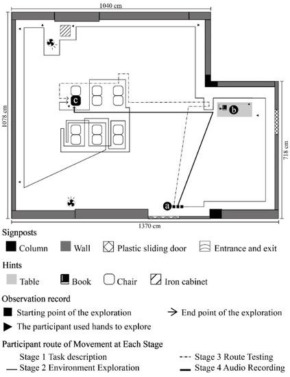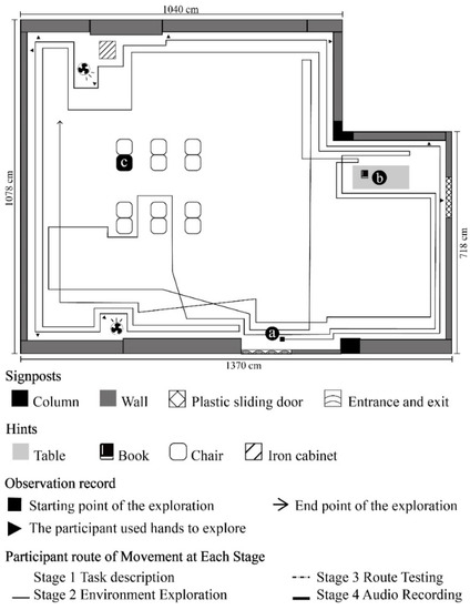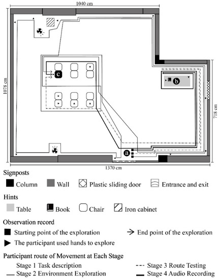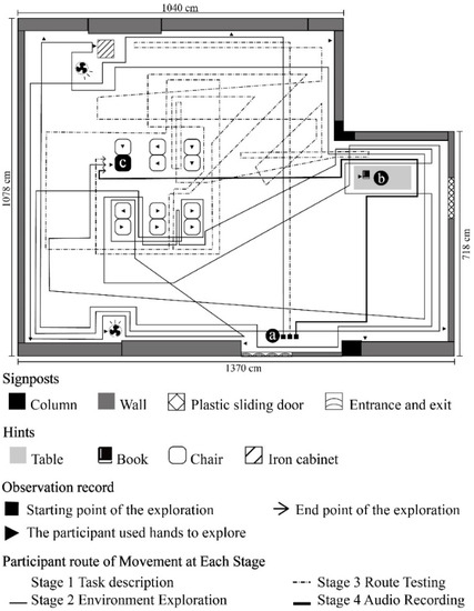 - Chen, X.; Liu, C.; Qiao, F.; Qi, K. The process of construction of spatial representation in the unfamiliar environment in the blind: The role of strategies and its effect. Acta Psychol. Sin. 2016, 48, 637–647. [Google Scholar] [CrossRef]