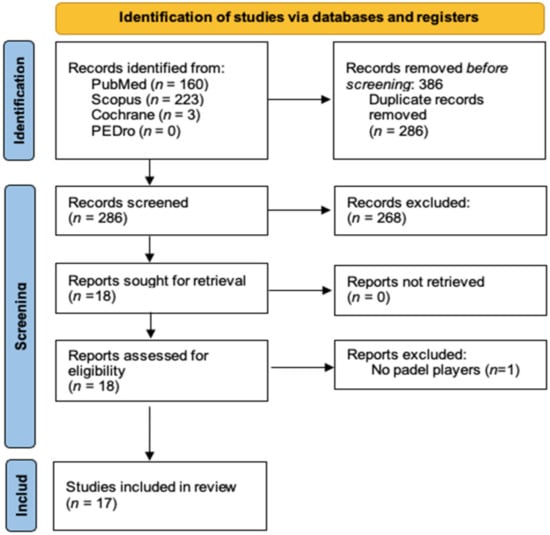 | Priego Quesada et al., 2018 [24] | Spain | Retrospective study | Recreational padel players (n = 80) | To examine the association between intrinsic/extrinsic factors and injury in recreational padel players. | Retrospective self-administered questionnaire | 40.0% of the players suffered at least one injury during the past year. Sex, age, frequency of padel sessions/week, and years of padel experience were not correlated with injuries. |