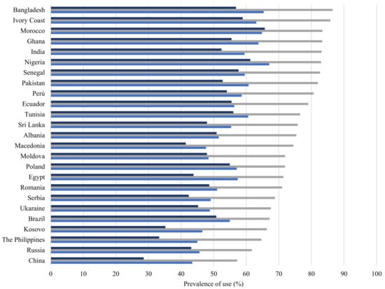 n | Prevalence of Use (%) | Rank | n | Prevalence of Use (%) | Rank | p Value * | ||