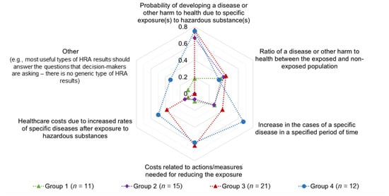 The following supporting information can be downloaded at: https://www.mdpi.com/article/10.3390/ijerph19074200/s1, Supplementary file, which includes both questionnaires and a summary of the responses, Figure S1: Most useful types of HRA results for decision-making—responses from groups 1 to 3 according to the background of the responders, Figure S2: Perceived importance of HRA elements by the background of responders, Figure S3: Perceived importance/usefulness of HRA elements for decision-making—comparison of responses of the four groups, and Figure S4: Opportunities for improving the utility of health risk assessment (expanded).