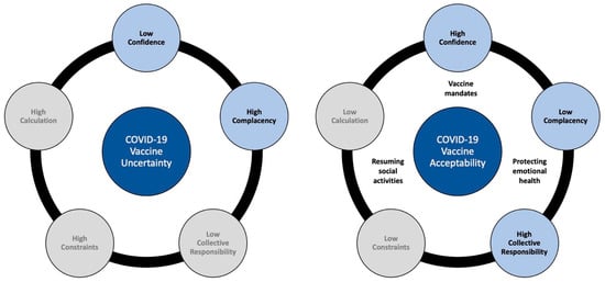 For the qualitative analysis, results are reported as constructs from the 5C model that contributed to COVID-19 vaccine uncertainty or acceptance among parents (see Figure 5).