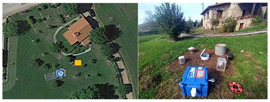 The selected low radon flux area is a private house garden located in Esles de Cayón (Cantabria, Spain) (latitude: 43.28, longitude: –3.80), with an average radium concentration average of (29 ± 3) Bq/kg (k = 2). The low radon flux campaign was conducted between 13 and 28 October 2021. Figure 3 shows an aerial view of this area and monitors during the experiment.
