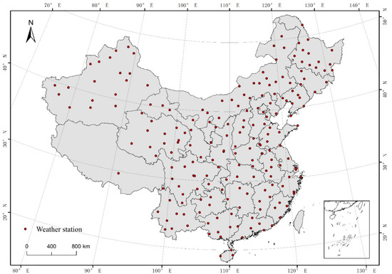 Map showing the spatial distribution of weather stations across China.