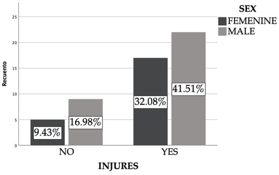 Over 70% of the people surveyed have some type of alteration or injury to the foot, of which 42% are men and the remaining 32% are women (Figure 2).