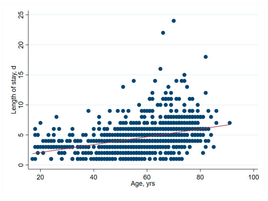 Correlation between age and LOS-LOS increases proportionally with age.