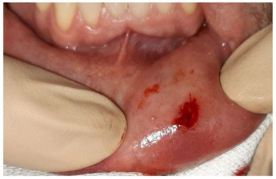 - Daroit, N.B.; Maraschin, B.J.; Carrard, V.C.; Rados, P.V.; Visioli, F. Submucosal nodule in buccal mucosa. Oral Surg. Oral Med. Oral Pathol. Oral Radiol. 2016, 6, 660–665. [Google Scholar] [CrossRef]