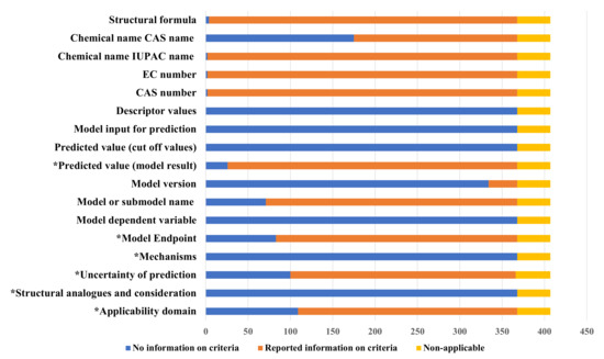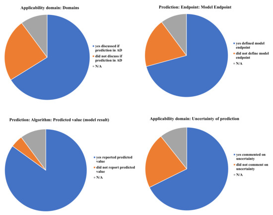 | Applicability domain | Domains * | Response and chemical structure space in which the model makes predictions with a given reliability (OECD 2007) 14 | 0 = no discussion on whether chemical falls in the applicability domain of the model |
