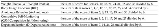 - Cuzzolaro, M.; Vetrone, G.; Marano, G.; Battacchi, M.W. BUT, Body Uneasiness Test: A new attitudinal body image scale. Psichiatr. Dell’infanzia E Dell’adolescenza 1999, 66, 417–428. [Google Scholar]