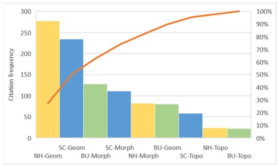 Pareto diagram. The frequency of scientific paper citations based on the analysis of the parameters’ families.