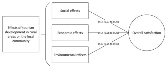 Perceived social effects of rural tourism development have positive impacts on resident satisfaction with their surrounding environment.