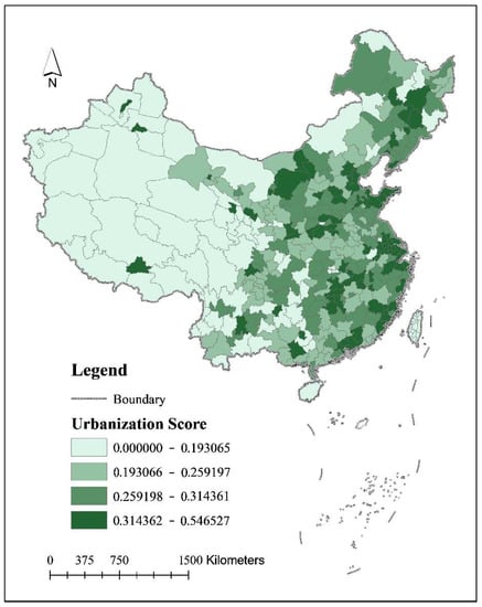 The entropy method was used to measure China’s comprehensive urbanization score to reveal the urbanization characteristics of Chinese cities at the prefecture-level and above, and the results showed that: