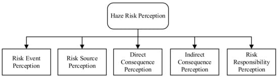 Through literature review and expert consultation, we believe that four dimensions—risk event perception, risk source perception, risk consequence perception and risk responsibility perception—can be used to measure haze risk perception. On this basis, we subdivide risk consequence perception into direct consequence perception and indirect consequence perception, and formulate five dimensions, as shown in the Figure 1.