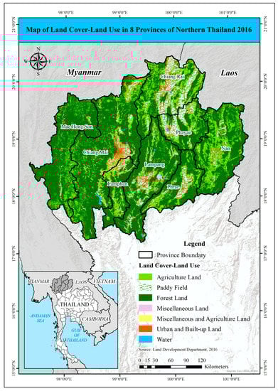 - Land Development Department. Available online: https://www.ldd.go.th/web_eng56/Land_Resources/Landuse_Data_in_Thailand/Land-Use-Types-of-Thailand.html (accessed on 29 March 2022).