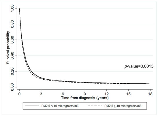 Nakharutai, N.; Traisathit, P.; Thongsak, N.; Supasri, T.; Srikummoon, P.; Thumronglaohapun, S.; Hemwan, P.; Chitapanarux, I. Impact of Residential Concentration of PM2.5 Analyzed as Time-Varying Covariate on the Survival Rate of Lung Cancer Patients: A 15-Year Hospital-Based Study in Upper Northern Thailand. Int. J. Environ. Res. Public Health 2022, 19, 4521. https://doi.org/10.3390/ijerph19084521