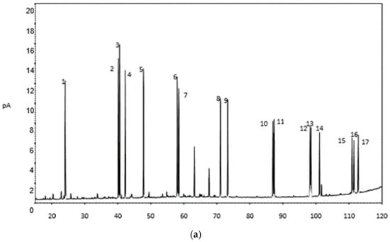 - O’Malley, V.P.; Burke, R.A.; Schlotzhauer, W.S. Using GC-MS/combustion/IRMS to determine the 13C/12C ratios of individual hydrocarbons produced from the combustion of biomass materials-application to biomass burning. Org. Geochem. 1997, 27, 567–581. [Google Scholar] [CrossRef]