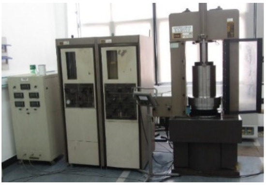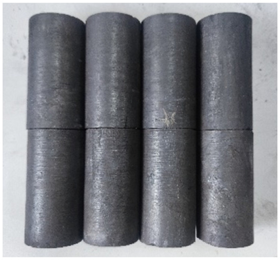 Coal samples originated from the #8 coal seams, buried 800 m deep in the third mining area of one coal mine located in Xianyang mining zone with an average failure strength of 22.3 MPa, which were obtained by drilling with a core sleeve with a diameter of 133 mm. Following the International Rock Mechanics Test Regulation, the standard test samples were processed into a cylindrical shape with dimensions of Φ50 mm × L100 mm, as shown in Figure 1. This test was carried out via the MTS815.02 rock mechanical test system in China University of Mining and Technology, as shown in Figure 2.