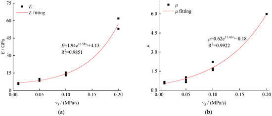Deformation and unloading rate of the unloading rate of the confining pressure: (a) elastic modulus and (b) Poisson’s ratio.