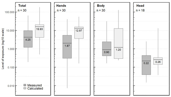 - Soutar, A.; Semple, S.; Aitken, R.J.; Robertson, A. Use of patches and whole body sampling for the assessment of dermal exposure. Ann. Occup. Hyg. 2000, 44, 511–518. [Google Scholar] [CrossRef] [Green Version]