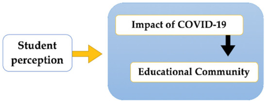 The hermeneutic exercise that is practiced in this research allows, from the subjectivity of the actors present in the process, to find an understanding of the potential of the experiences of the protagonists [42], in this case, educational, social and health, to better understand the impact of COVID-19 on the health of the educational communities. Additionally, teleologically, the application of the qualitative methodology allows the testimonies of the practices to be interpreted for the purpose of knowing the reality better [43]. In order to understand this adequately, it is necessary to turn to the context and the cultural matrix of the one who produces the text (in its broad sense as a source), and to understand that hermeneutic rationality and certainty are achieved “by turning to the linguistic and communicative terrain, when we appeal to the texts themselves, to the words, to the arguments of rhetorical discourse, to the sense and to the intersubjective meanings—the conviction by the word” [44] (p. 61). In this case, we appeal to the knowledge of the perception of teachers in their initial training of the impact of COVID-19 on the relationships among members of educational communities (Figure 1).