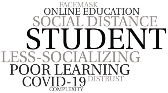 Student testimonies suggest that COVID-19 had a negative influence on the relationships among the students themselves (Figure 3). This perception is based on comments in which the respondents express that there has been a negative impact on the socialization of the student body, an increase in distrust and fear among them, and in some cases, episodes of anxiety and tension, which attenuated over time. The feeling of strangeness flooded the space and the forms of relationships, which became more complex. In addition, they argue that moments of cooperation and teamwork decreased substantially, so the possibilities for shared learning diminished. In addition, there are difficulties in oral expression. This perception is accompanied by an explanation about the causes, derived from the health situation. They point to the new organization of the center’s spaces and resources. The bubble groups, the obligatory use of masks, the increase in online learning experiences, the ban on the exchange of school material, the reduction in the number of pupils per classroom and less space for pupils to work and move around are the most prominent. Additionally, they warn of the previous situation, which was marked by a long period of confinement, with a high level of social distancing among pupils and which was also marked by a high prominence of screens as a substitute for the direct interaction among peers.