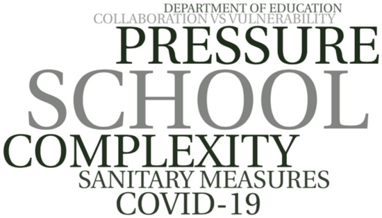 The pandemic increased three of the most implicated factors in the generation of stress in teachers: workload, emotional fatigue and educational reforms [32]. In that respect, although there has was not a total abandonment by the different administrations, the quarantine made access difficult. This leads to a lack of institutional attention that increases the feeling of abandonment of the teaching staff. As with other professionals, whose labor has been affected by the pandemic, the service they can offer to the public is gradually deteriorating, resulting in a government run by overstretched workers.