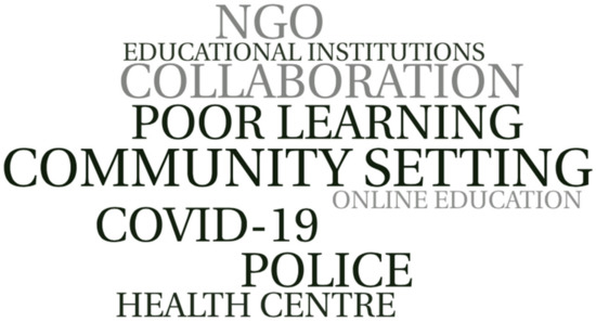 In relation to the impact of COVID-19 on the community, respondents noted an almost total decrease in extracurricular activity during the quarantine, which gradually returned to normal activity (within the new normality) over the following months. While attendance at school and after-school activities does not have a significant impact on pupils’ morale [23], respondents noted the risks involved, in particular, the lack of reinforcement of school content that serves pupils who lag behind. Likewise, they also identified an increase in attitudes of solidarity, highlighting the close collaboration established between different educational agents with town halls, collectives, the police, the administration, and other associated agents.