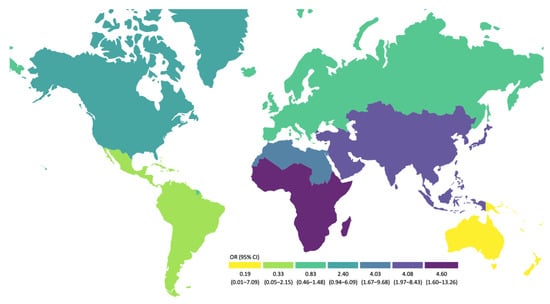 In this study, we found that destination for travels made during the past year is an important personal risk factor for carriage of ESBL-EC in the general population, especially North Africa, Sub-Saharan Africa, Asia, and—to some extent—North America. Other studies in risk populations have found similar results: some of these studies indicate that the prevalence of ESBL-EC acquisition is worryingly high in visitors returning from India, China and Southeast Asia, Middle East, Northern Africa, and Central and South America [,]. For European residents, travel outside of Europe was identified as a major travel risk factor []. A 2017 prospective study performed on Dutch travelers (n = 2001) found out that 34.3% of participants who were ESBL negative before travel, became positive for ESBL-EC during their travels, with the highest number being among participants travelling to Southern Asia [].
