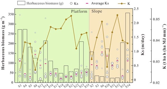 3.1. The Statistical Characteristics of the K Factor, Ks and Herbaceous Biomass